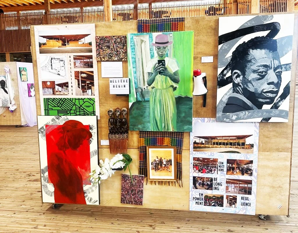 Using layered materials, portraiture, and symbolic storytelling, the installation brought depth and emotion to the project, transforming architectural ideas into something tactile and experiential. The result was a multi-dimensional expression of resilience, community, and cultural pride.